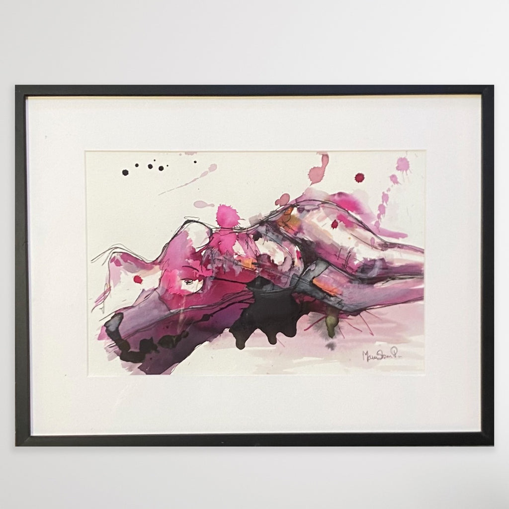 Mål: 30x40cm vandret, sælges samlet inkl. glasramme i sort træ.