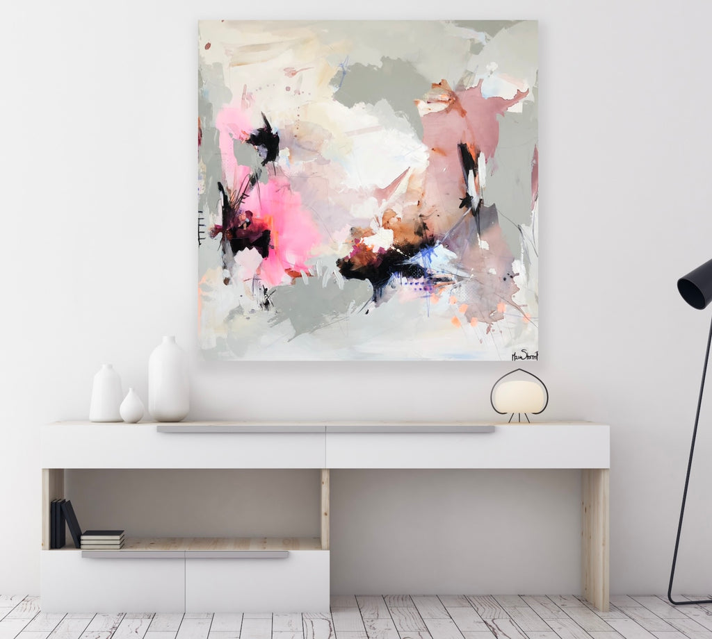 Mål: 100x100cm, akryl på lærred, sælges uden ramme.