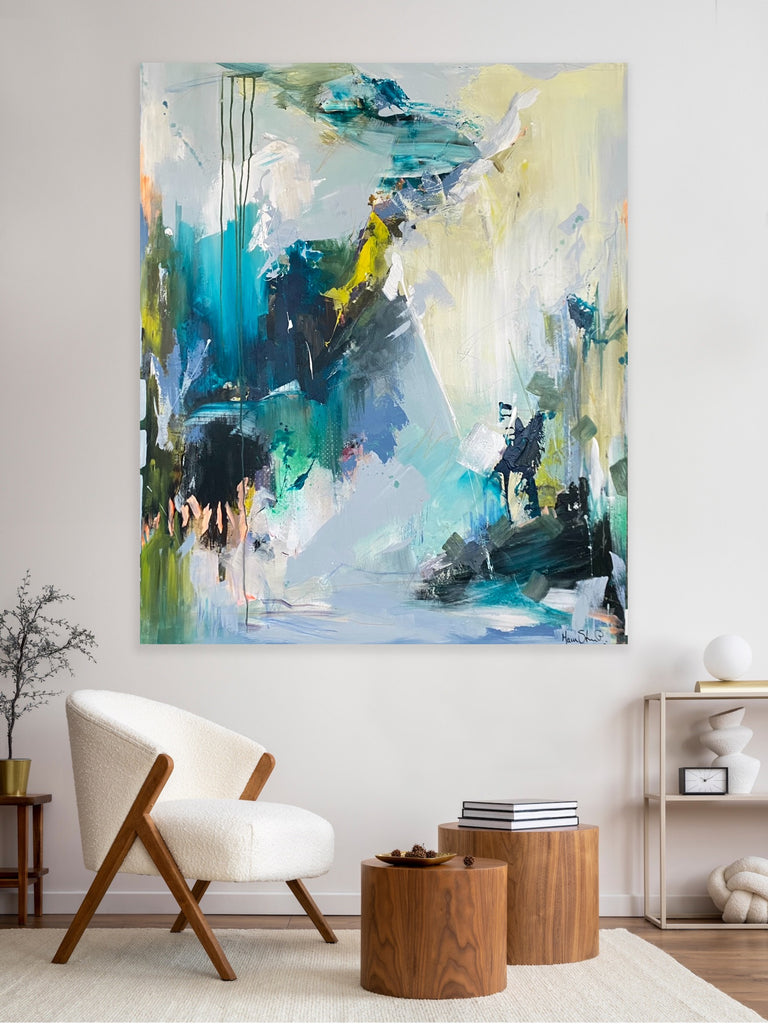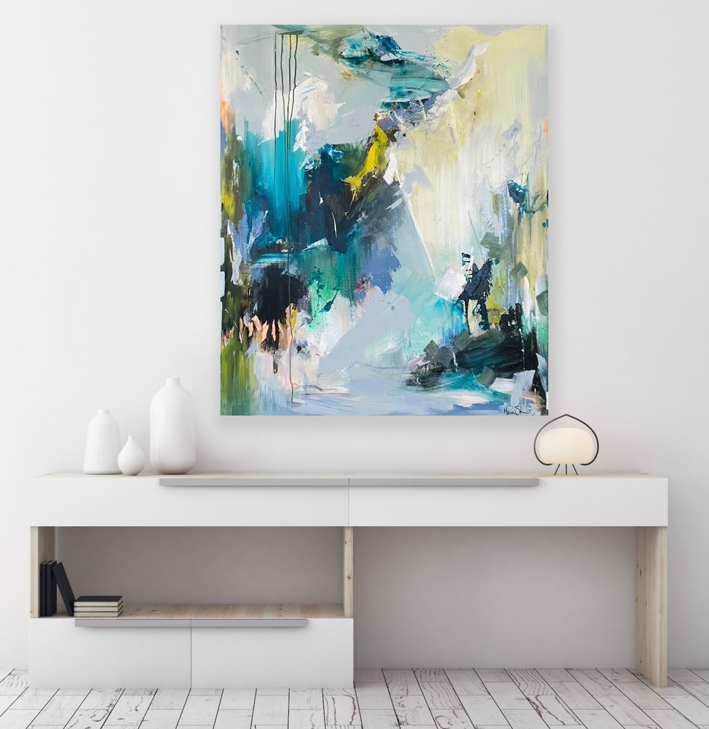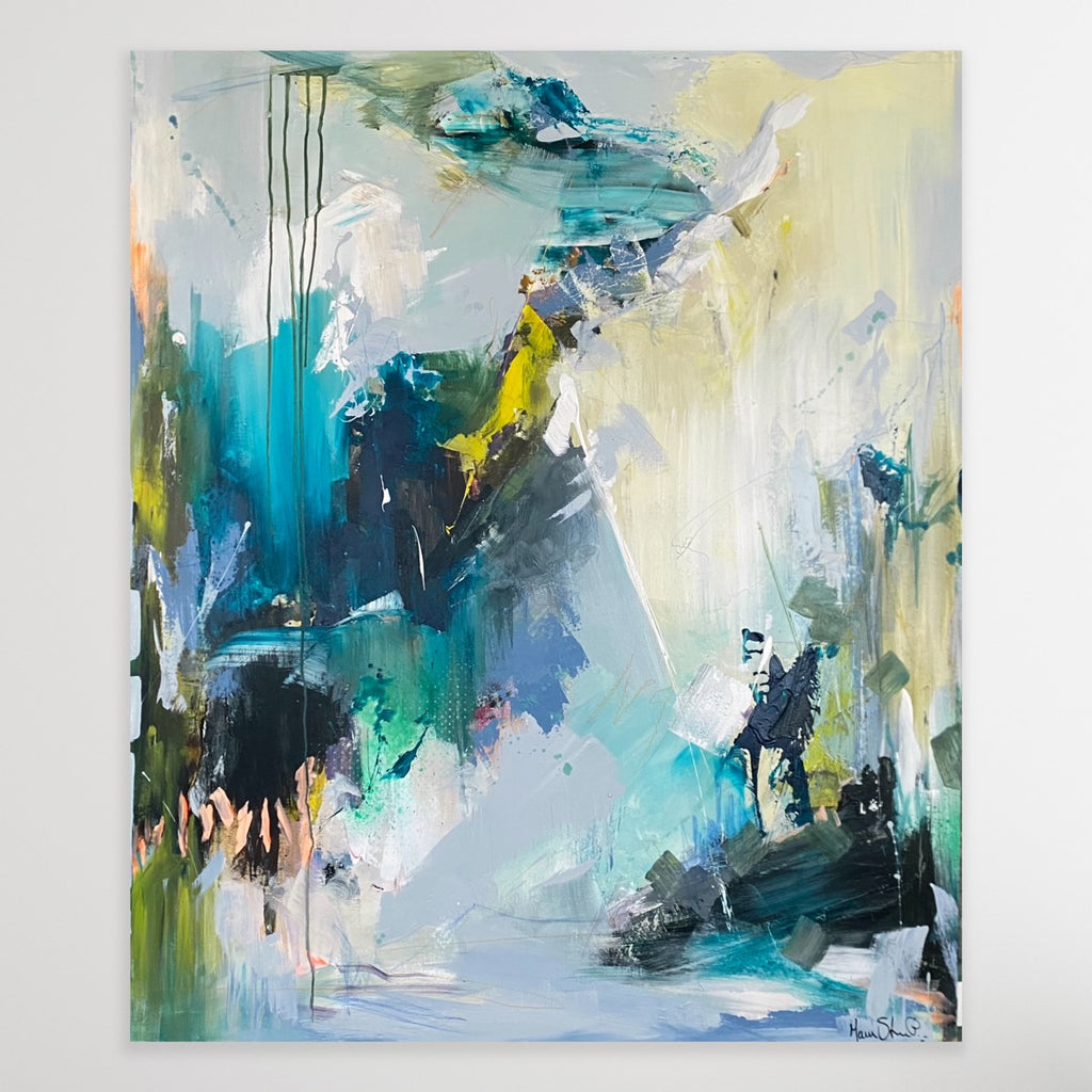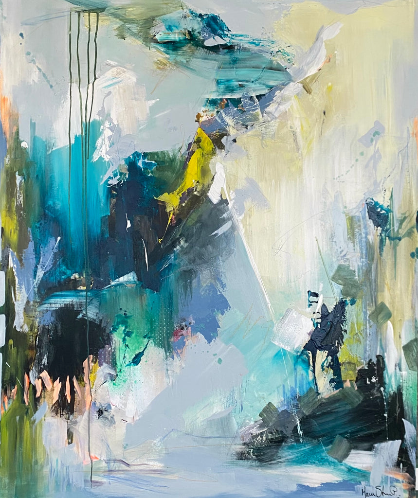 Mål: 100x120cm, akryl på lærred, sælges uden ramme.