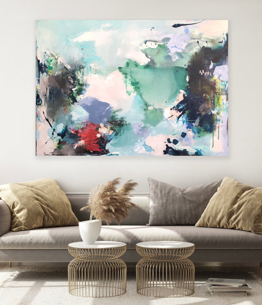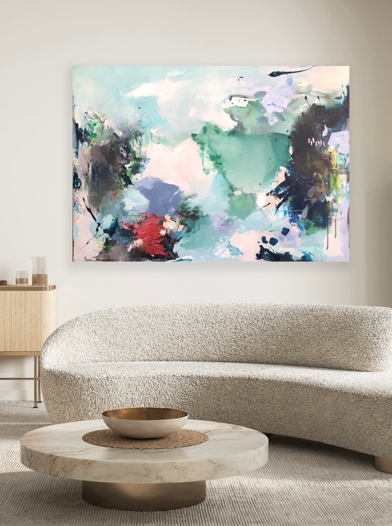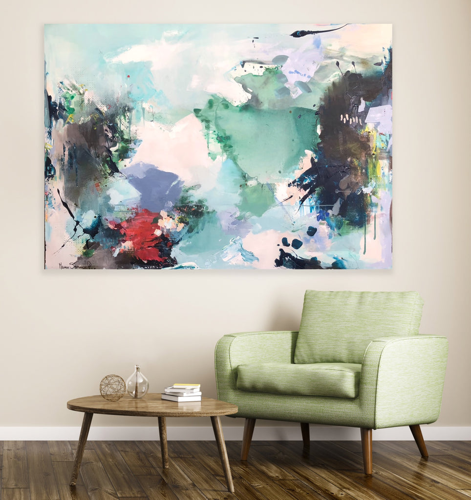 Mål: 100x140cm, akryl på lærred, sælges uden ramme.